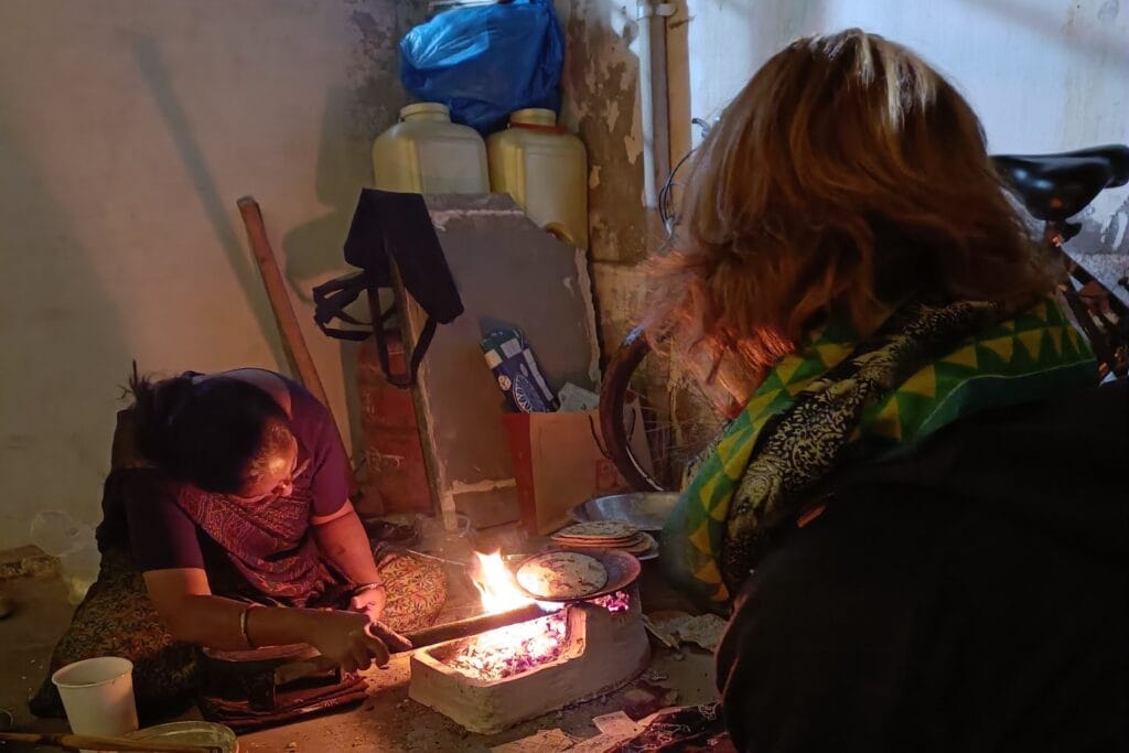 Siamo stati intorno al fuoco per sfuggire al freddo della sera, a parlare un po’ e a guardarla all’opera. Abbiamo anche mangiato così, con il fuoco come unica luce, con la nonna e Ankita.