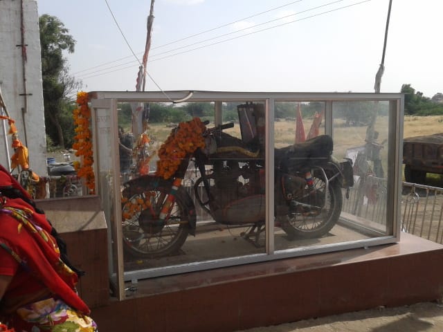 E così è stato. Viene costruito un piccolo tempio, e ovviamente il punto centrale del tempio è la motocicletta di Om Banna. Da allora quello sono passati circa venti anni, ed è diventato un luogo di devozione visitatissimo, molto frequentato dalle persone del luogo e non solo.