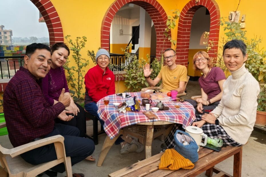 A fianco a noi tre signore stavano bevendo il tè, e a un certo punto ci hanno invitato a unirci a loro. Una di loro veniva dalla Cina, due dalla Malesia. Poi ci hanno raggiunto brevemente un’altra ragazza dalla Cina, e la coppia nepalese che gestiva l’albergo.