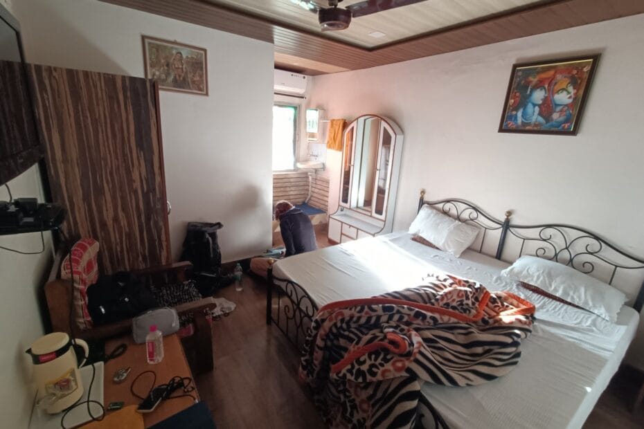 La stanza era… non molto buona, per usare un eufemismo. Mobili molto vecchi, letto abbastanza scomodo, lenzuola da non guardare troppo da vicino. Abbiamo dormito nei nostri fidati sacchi letto, che erano rimasti inutilizzati per quasi un mese.